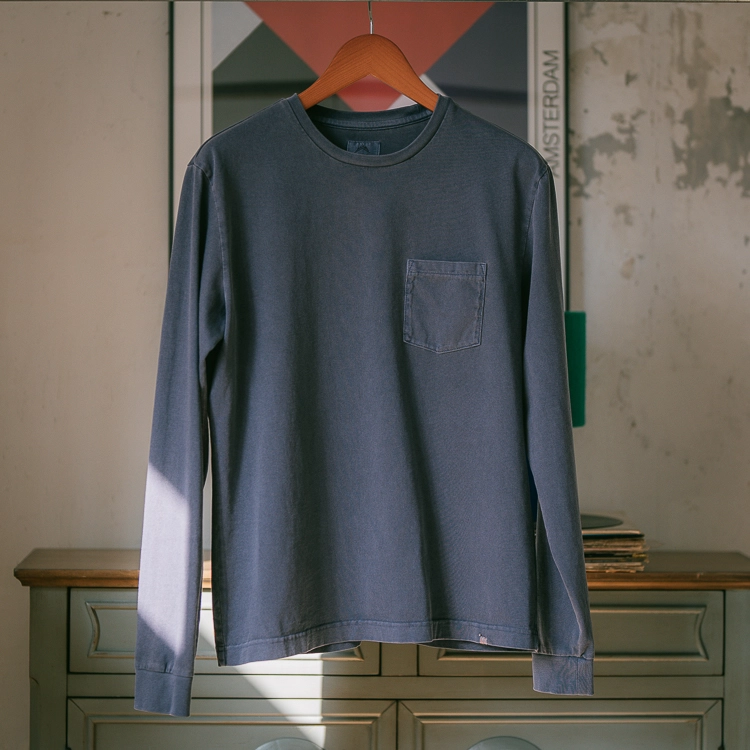 [Lodge] Comfy Long Sleeve Pocket T-Shirts Navy (Unisex)